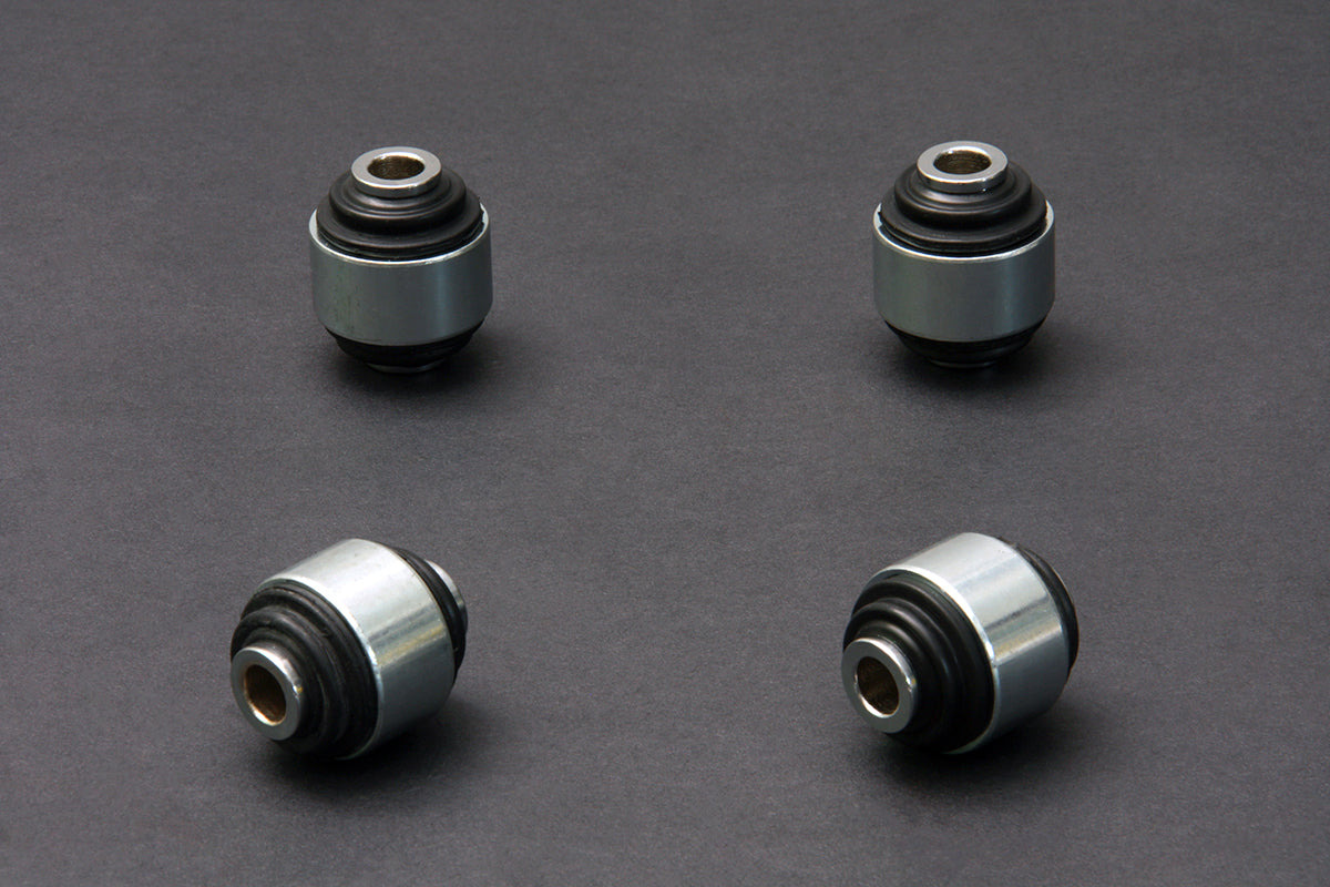 Hardrace use an uprated rubber compound rather than polyurethane to minimise noise and vibration transmission. These bushes provide a significant resistance to unwanted arm movement. Rose joints and bearings allow free movement of the arm with minimal stiction. This allows the suspension to work more efficiently improving the spring and dampers ability to function as designed and keep the cars tyres in contact with the ground and control body movement.