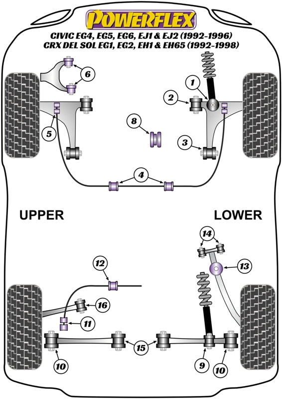 Fitment: Honda Civic EG4/5/6, EJ1/2 (1992-1996), EH1 & EH6 (1992-1998)
