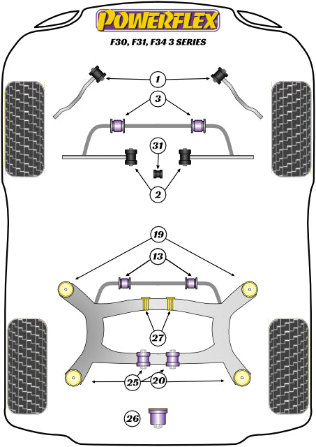 Powerflex Rear Subframe Rear Bush Insert for BMW 3 Series F30/F31/F34 (12-19)